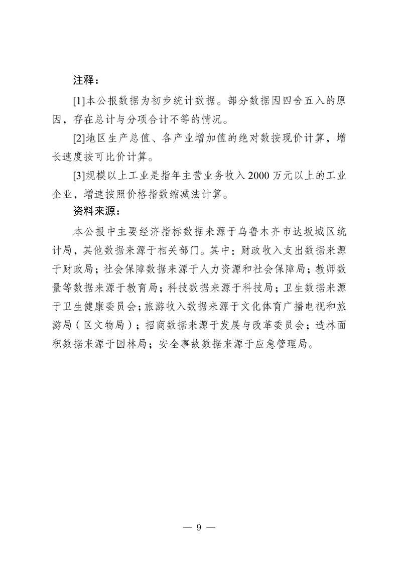 达坂城区2024年国民经济和社会发展统计公报