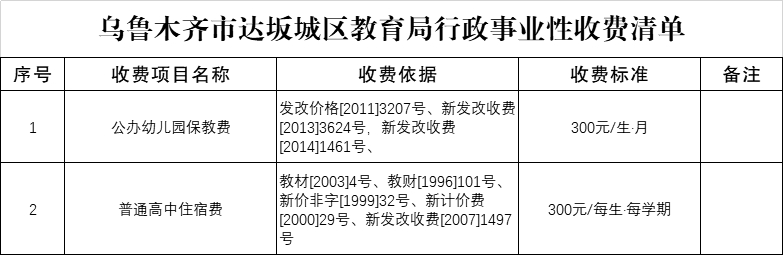 乌鲁木齐市达坂城区教育局行政事业性收费清单