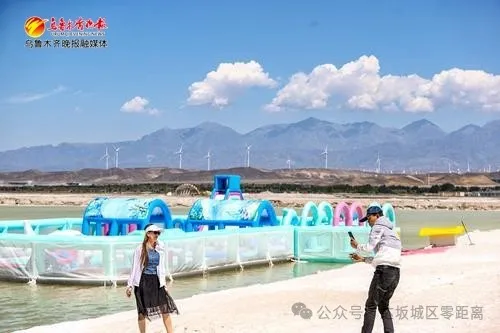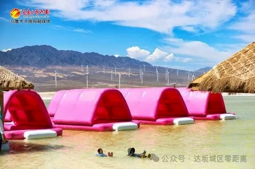 “中国死海”在达坂城。依托盐湖,这里打造了达坂城盐湖景区。因为这里景区与制盐生产两者并存,走进景区,市民可以近距离了解盐的生成与开采,可以观赏盐雕、感受漂浮,还可以体验沙地卡丁车、滑盐等游玩项目。