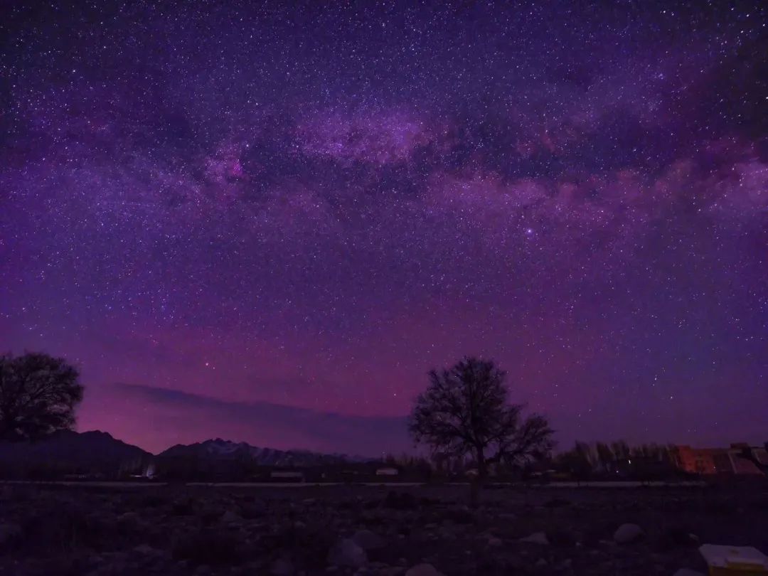 4月24日凌晨4时许,乌鲁木齐市摄影家协会一行五人,在达坂城区阿克苏乡黄渠泉村,成功捕捉到极为罕见的极光景象。天空中,明亮的红色和神秘的紫色交织变幻,绮丽无比,让人如痴如醉、心旷神怡。