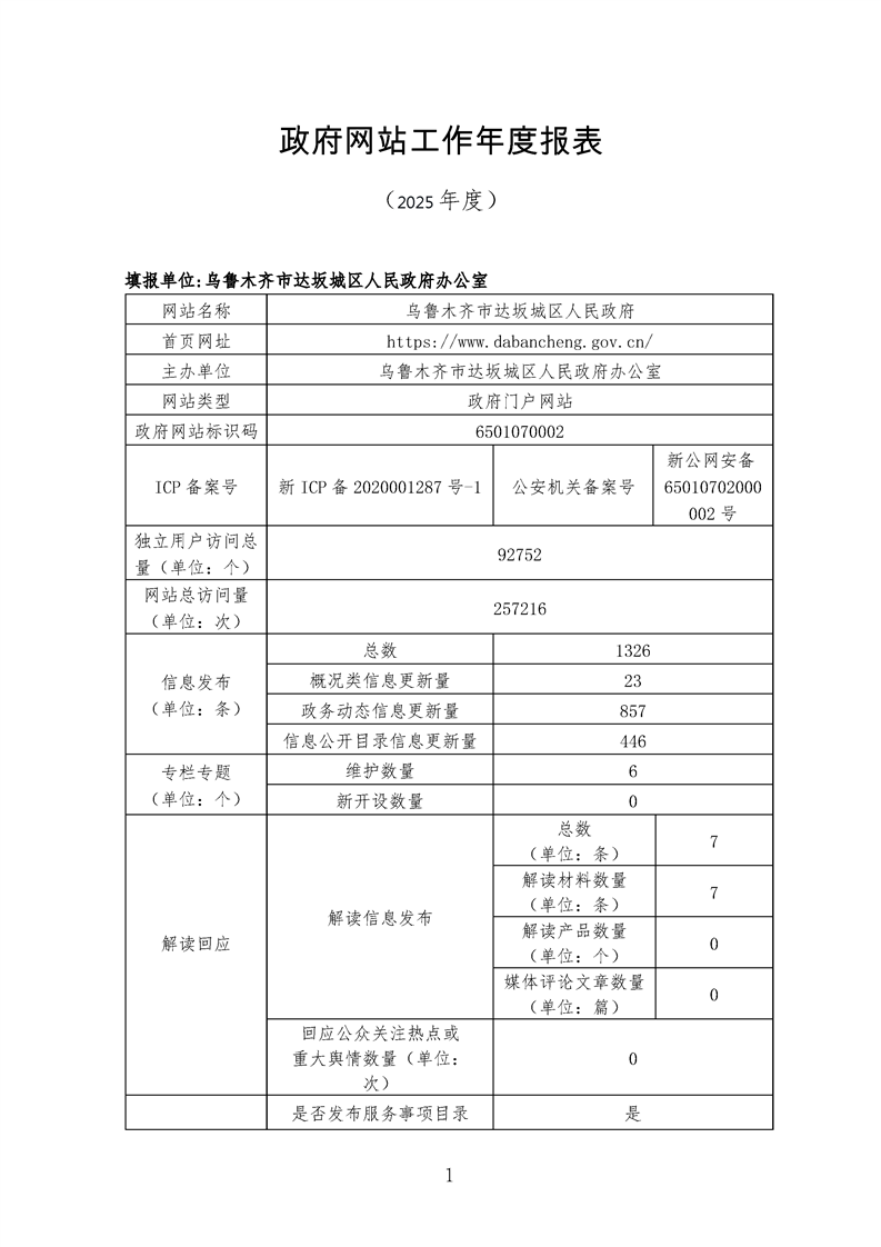达坂城区政府网站工作年度报表(2025年度)