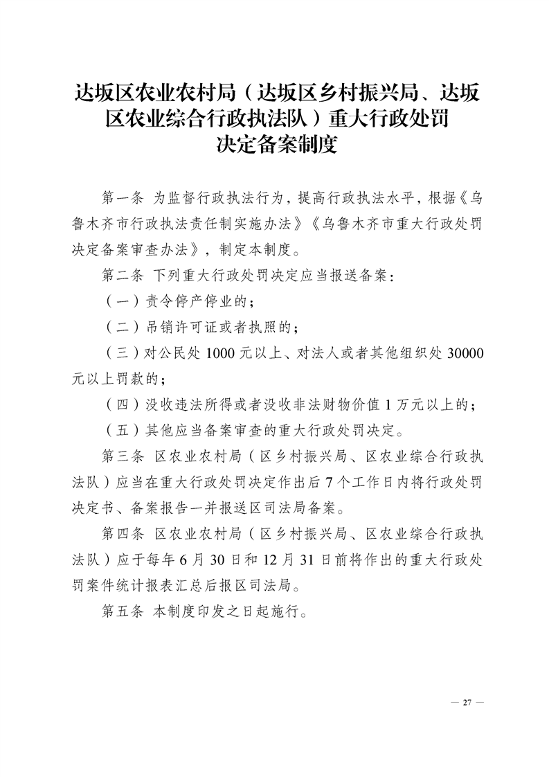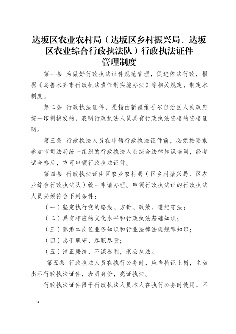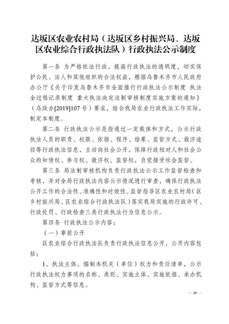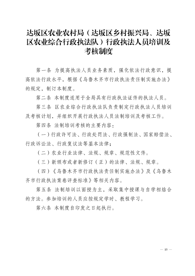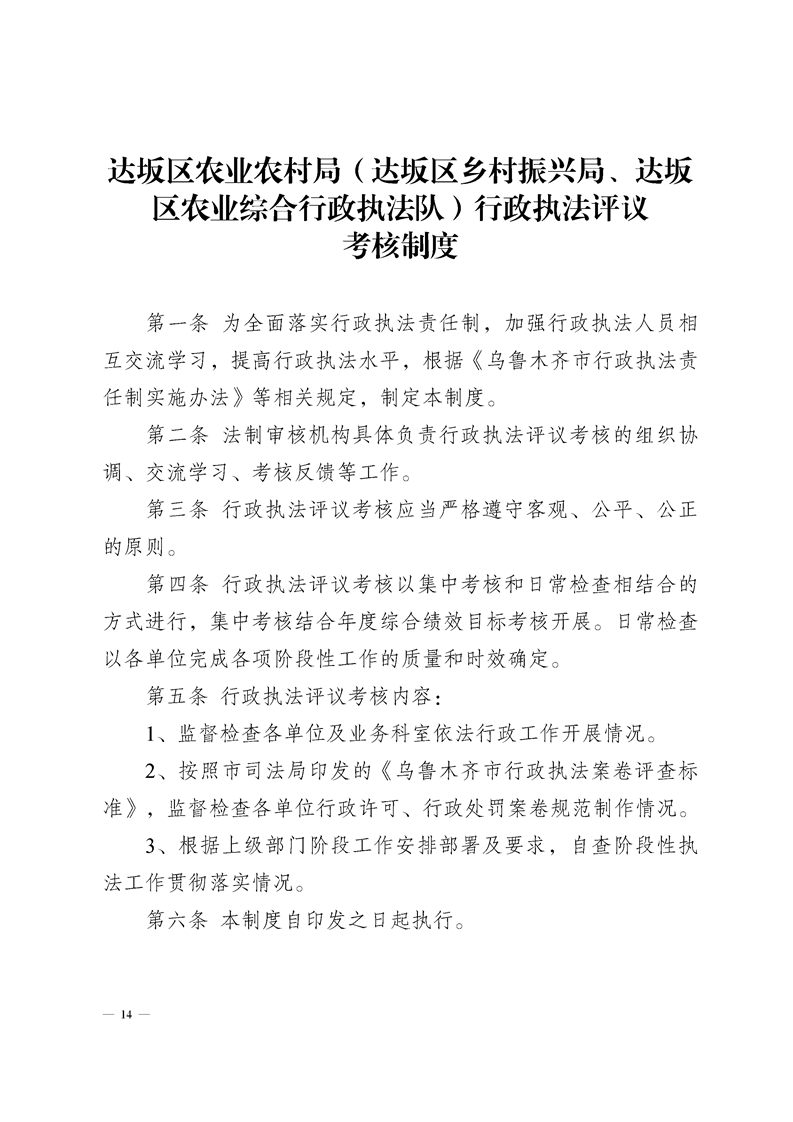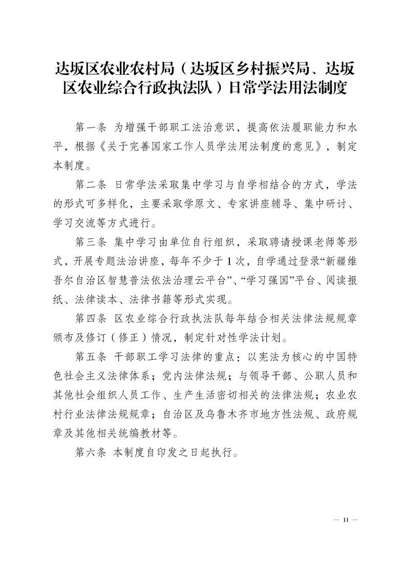 达坂城区农业农村局制度